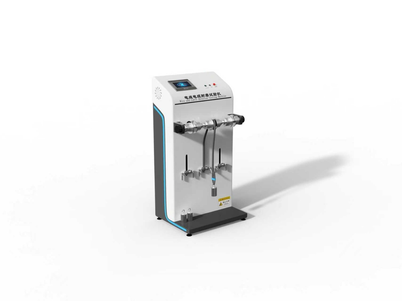 电缆样品通过夹具固定,一端悬挂砝码或通过液压装置施加恒定压力,确保摩擦过程中接触力稳定。